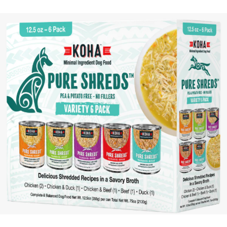 Koha Dog Can Pure Shreds Variety 12.5 oz 2/6Pack